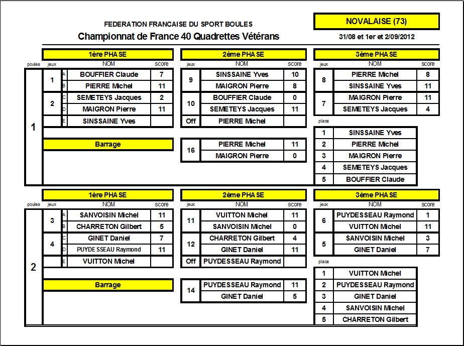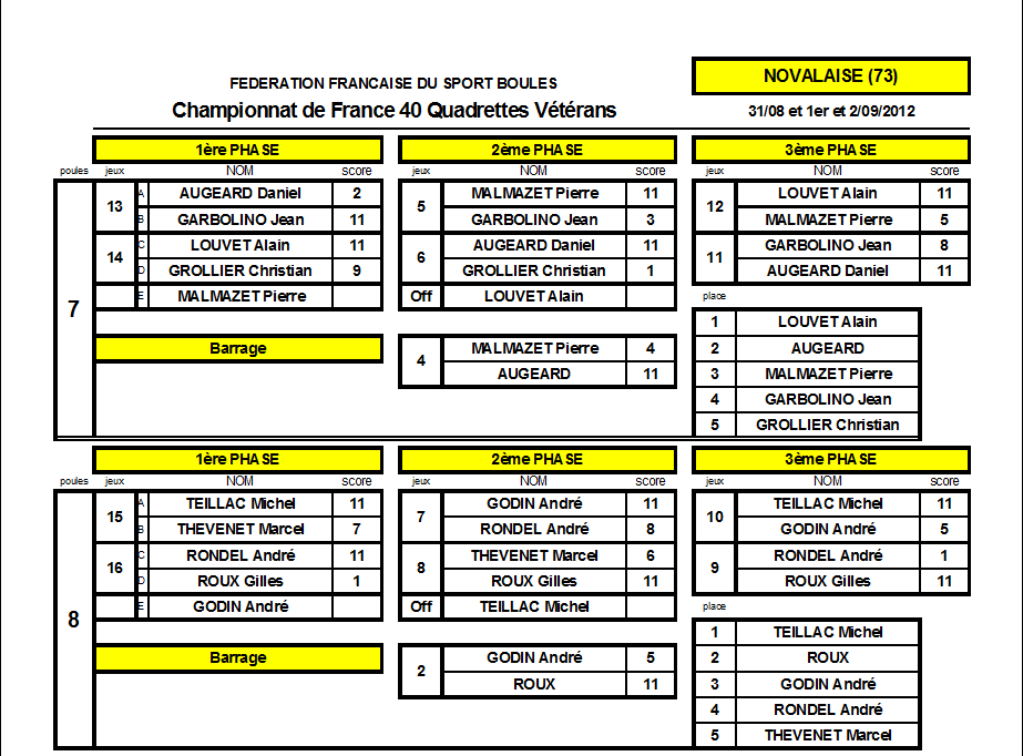 Dans ce billet, les résultats du championnat de France Vétérans en quadrette à Novalaise.