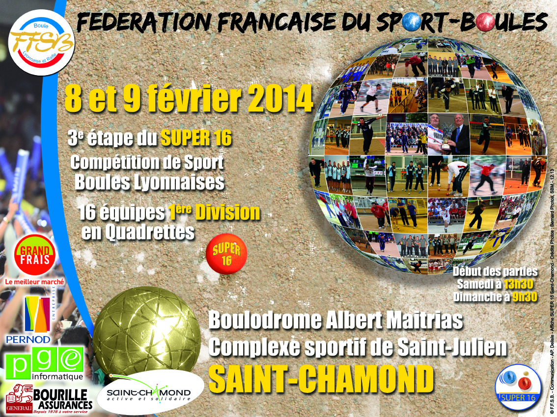 La trosième étape du Super 16 fait étape à Saint-Chamond les 08 et 09 février 2014.