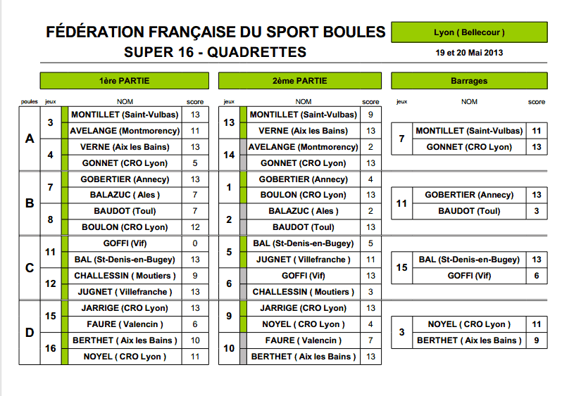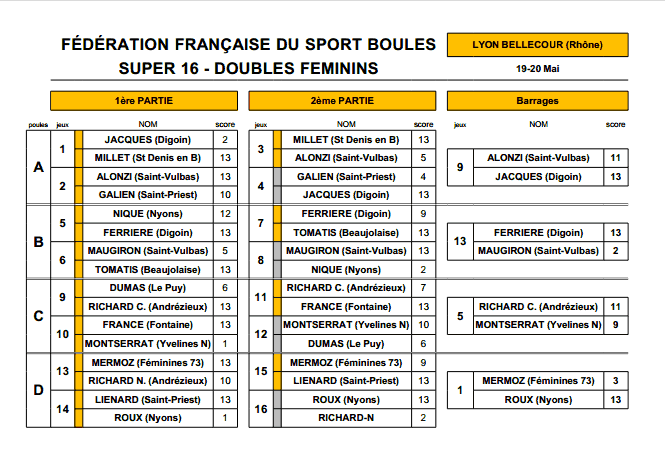Dans ce billet, les résultats des Super 16 et Super 16 Féminin de la 101ème édition des tournois boulistes de Pentecôte.